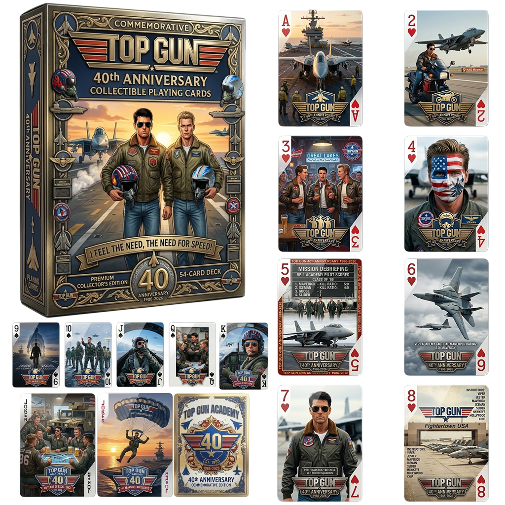 For four decades, Top Gun has defined the ultimate cinematic thrill ride. Now, Maverick and Iceman are taking over your game night with the Top Gun 40th Anniversary Commemorative Edition Playing Cards (1986–2026).