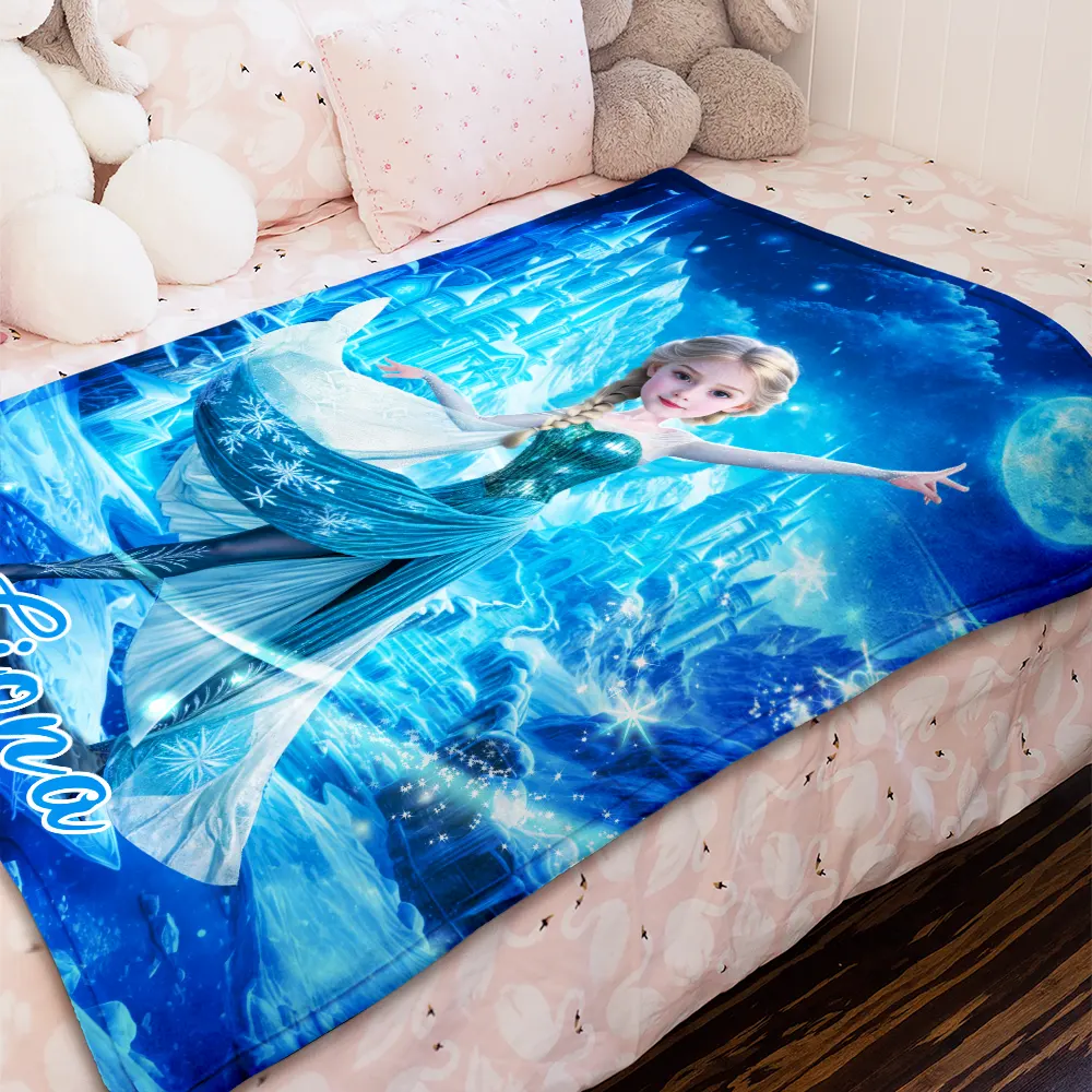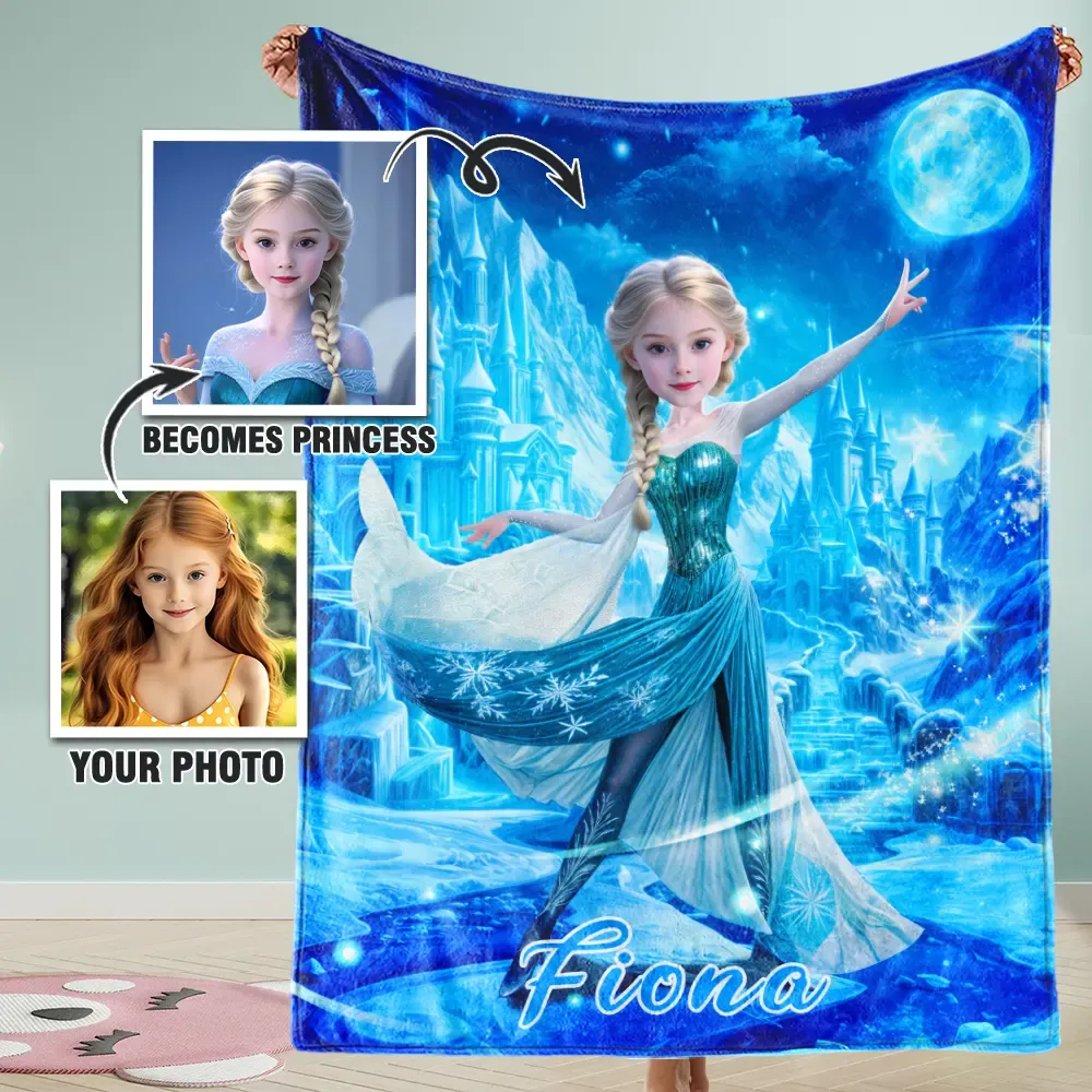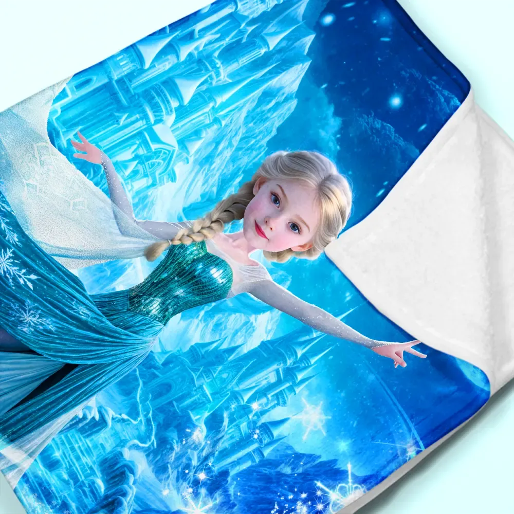 Custom Photo Blankets AI-Powered 3D Princess Dancing In The Snow Personalized Ice Queen With Your Photo