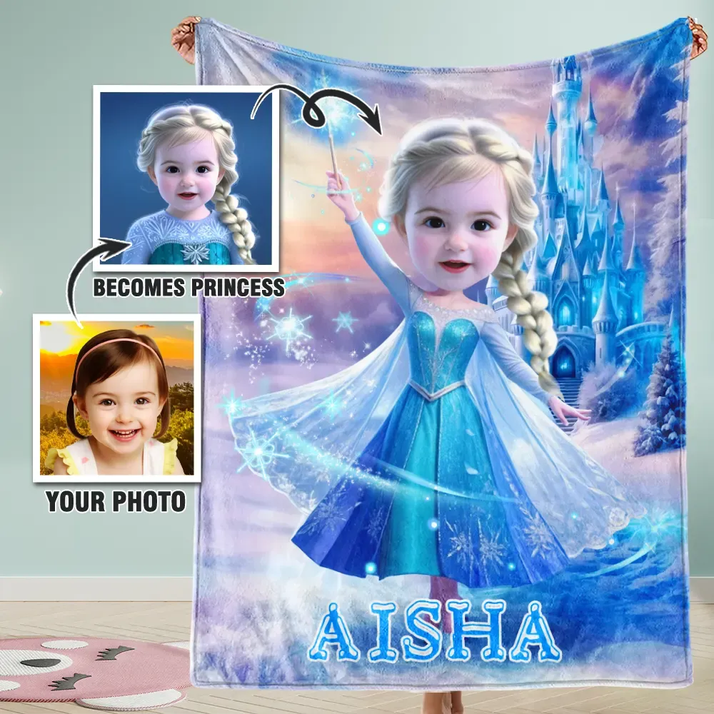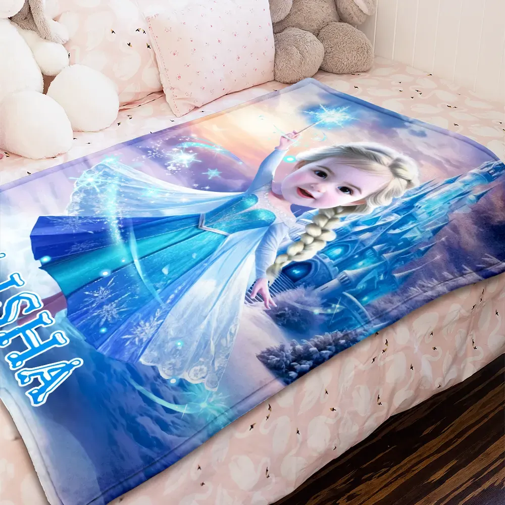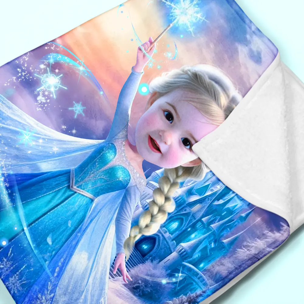 Custom Photo Blankets AI-Powered 3D Princess With Fairy Wand Personalized Baby Ice Queen With Your Photo
