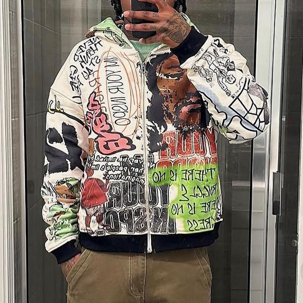 Personalized Multi-element Print Long Sleeve Zipper Hoodies